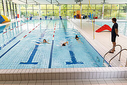- Durant les vacances scolaires, la piscine du Lac vous propose de découvrir "l'aquaspé", un circuit training pouvant être composé de trampoline, bike, palmes... L'intensité des exercices est modulable, permettant à chacun d'évoluer à son rythme.